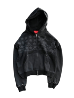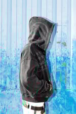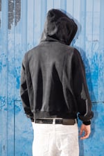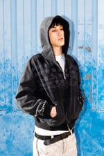 Distressed raw edges on hood and sleeves